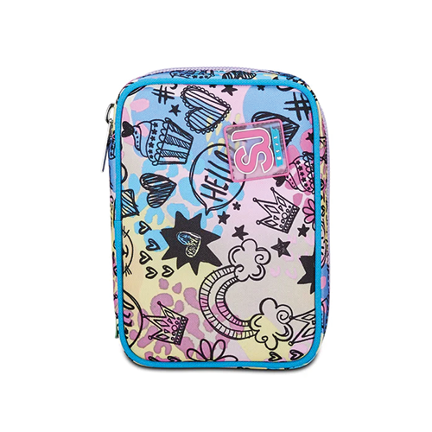 Ciao! Sono l’astuccio Speed Pad SJ Gang! Dotato di una comoda apertura tramite maxi zip e di plance con sistema a incastro senza elastici per inserire più facilmente penne e matite che troverai nell’apposita bustina, puoi montarmi e smontarmi a tuo piacere e sono interamente lavabile. Comodo, pratico, versatile e coloratissimo, non ti resta che abbinarmi a uno zaino o a un trolley SJ Gang!