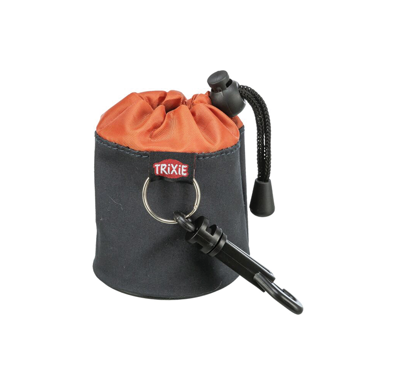 Borsa per dolcetti per cani, realizzata in poliestere. Un moschettone è incluso per un facile aggancio alla guida. La scatola degli snack può essere chiusa con un cordino. Realizzato in materiale idrorepellente di alta qualità