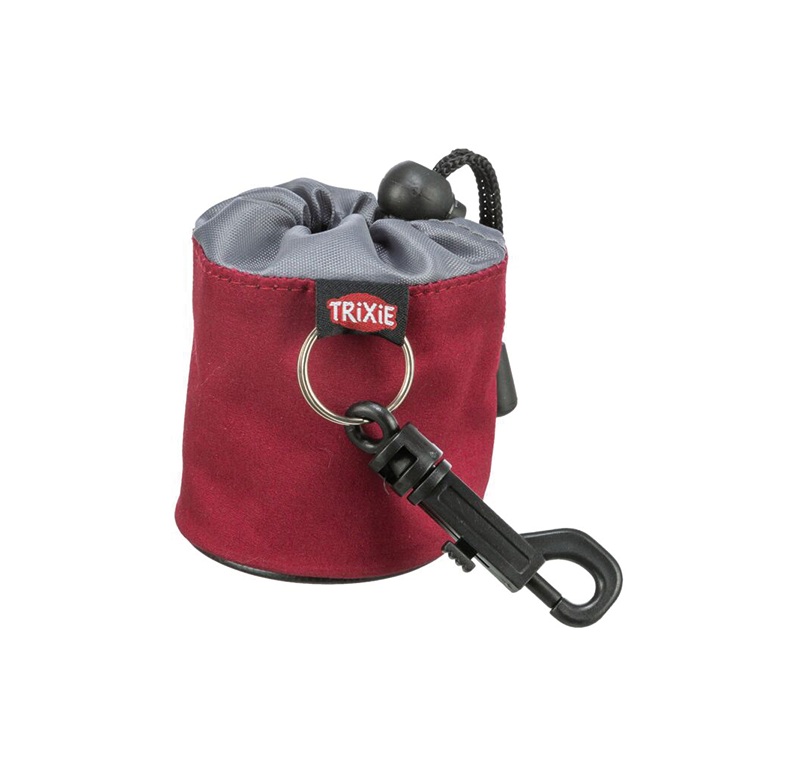Borsa per dolcetti per cani, realizzata in cotone e poliestere. Un moschettone è incluso per un facile aggancio alla guida.
