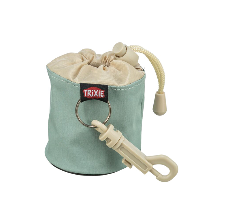 Borsa per dolcetti per cani, realizzata in poliestere. Un moschettone è incluso per un facile aggancio alla guida. La scatola degli snack può essere chiusa con un cordino. Realizzato in materiale idrorepellente di alta qualità