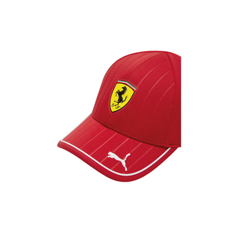 Caratterizzata dalla classica costruzione a sei pannelli, il design dell'accessorio si distingue per il motivo grafico tonale hot-stamped sulla corona e l'iconico Scudetto Ferrari in TPU sul davanti, mentre il velcro posteriore garantisce una regolazione personalizzata e una perfetta vestibilità.