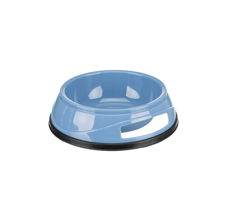 Ciotola in plastica con anello in gomma, antiscivolo. Lavabile in lavastoviglie.