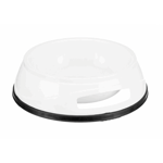 Ciotola in plastica con anello in gomma, antiscivolo. Lavabile in lavastoviglie.