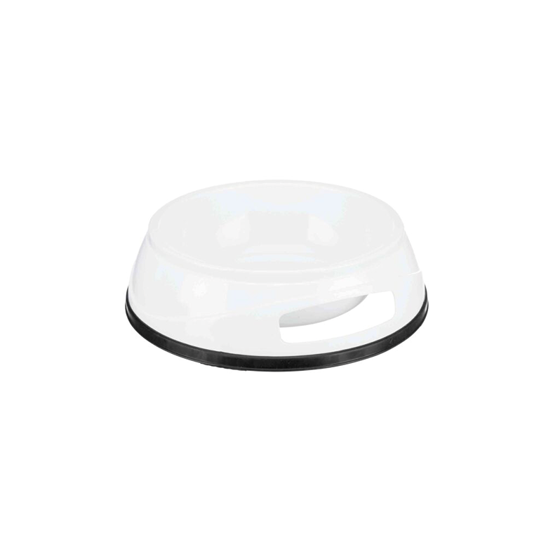 Ciotola in plastica con anello in gomma, antiscivolo. Lavabile in lavastoviglie.