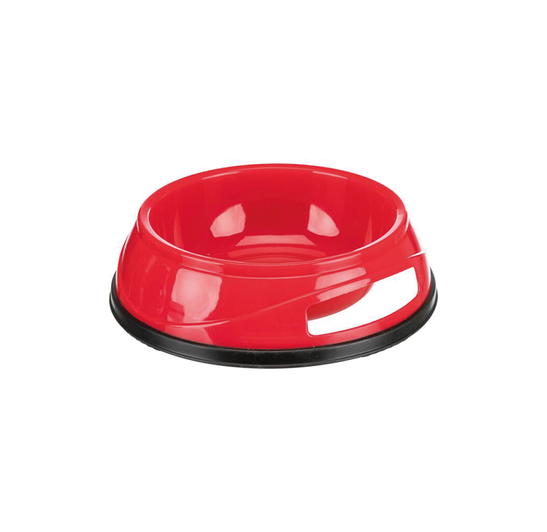 Ciotola in plastica con anello in gomma, antiscivolo. Lavabile in lavastoviglie.