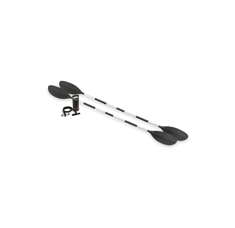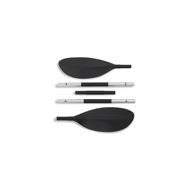 Sono a disposizione uno skeg direzionale removibile, due maniglie alle estremità per il trasporto agevolato e due remi in alluminio.