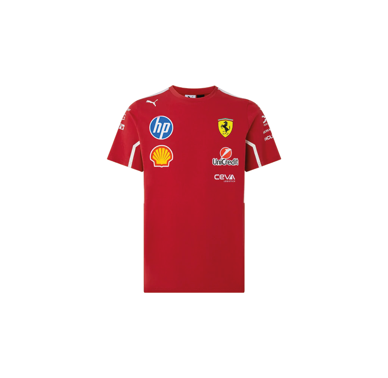 Pezzo chiave della collezione 2025 Replica, questa T-shirt a maniche corte si ispira a quella indossata dal Team Scuderia Ferrari HP, riprendendo le stesse caratteristiche tecniche ed estetiche.
