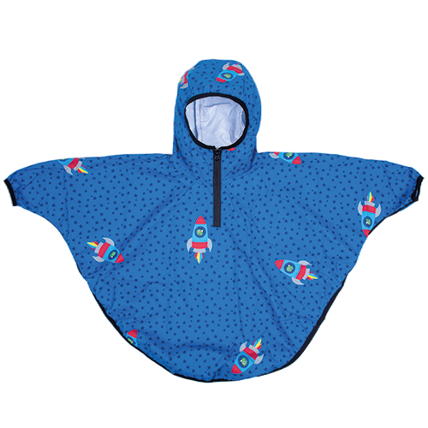 Questa mantellina in 100% Polietilene, materiale antistrappo, antivento, antiacqua, resistente ai raggi UV, termoregolatore, atossico, ipoallergenico e riciclabile, diventerà un capo essenziale nei giorni di pioggia e proteggerà il tuo piccolo, tenendolo asciutto, grazie anche alla polsiere elastiche.