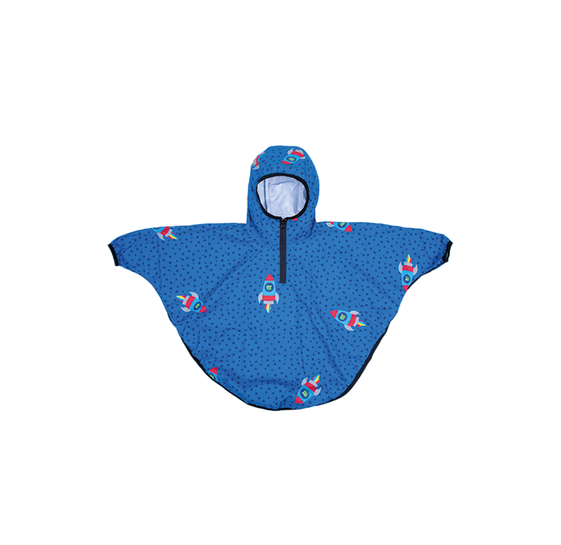Questa mantellina in 100% Polietilene, materiale antistrappo, antivento, antiacqua, resistente ai raggi UV, termoregolatore, atossico, ipoallergenico e riciclabile, diventerà un capo essenziale nei giorni di pioggia e proteggerà il tuo piccolo, tenendolo asciutto, grazie anche alla polsiere elastiche.