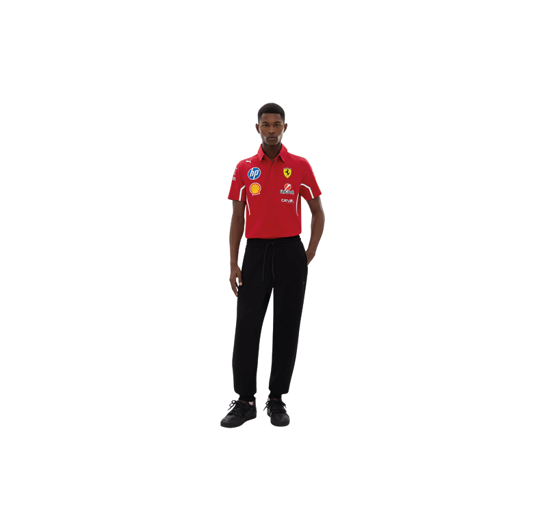La polo della collezione Ferrari 2025, ispirata al capo ufficiale indossato dal team Scuderia Ferrari, celebra l'estetica del Campionato Ferrari di Formula 1.