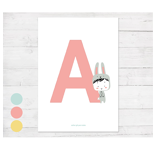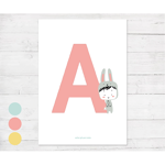 POSTER CON INIZIALE CON CONIGLIO - ESTHER GILI - TUTETE - A3 (29,7 x 42 cm) - PERSONALIZZATO