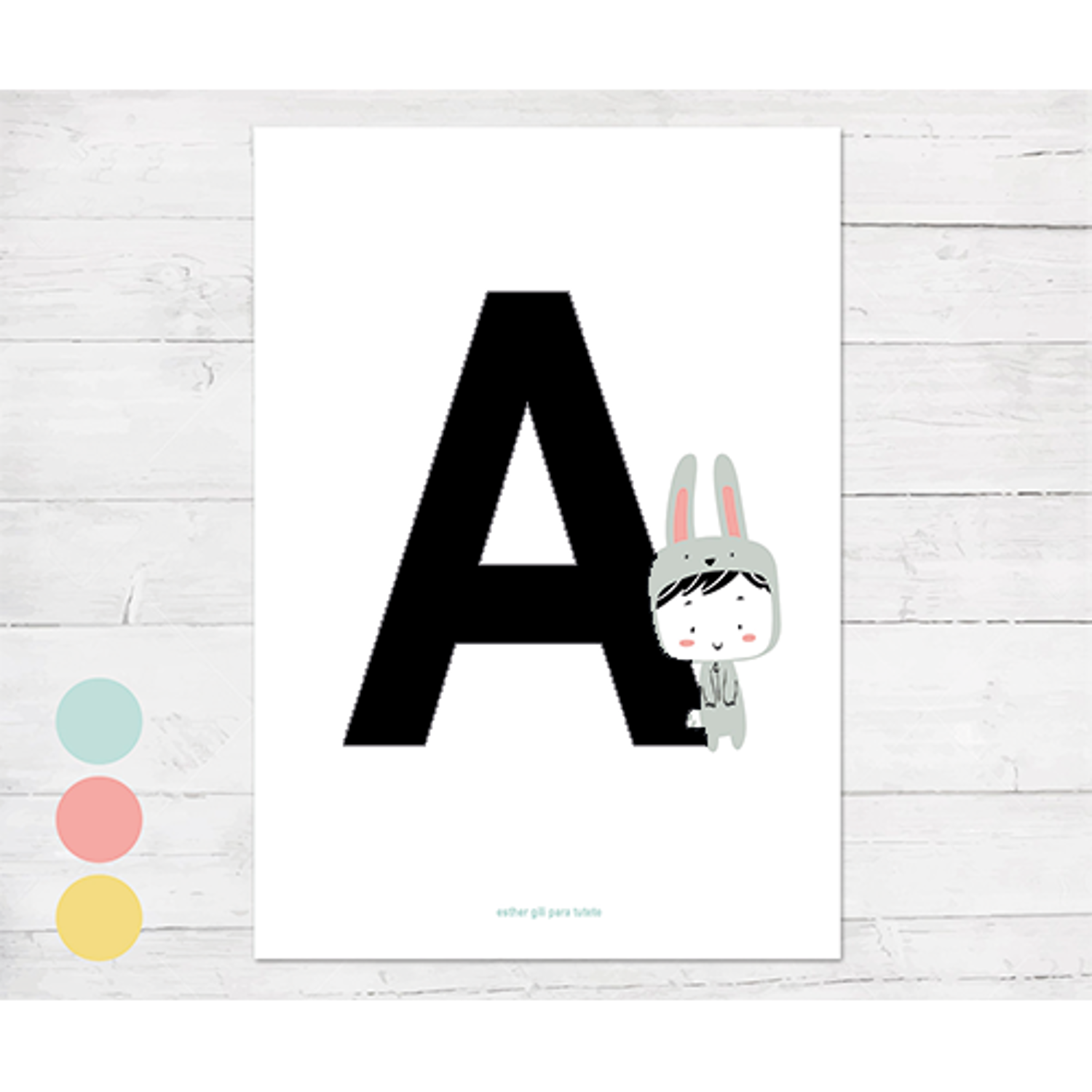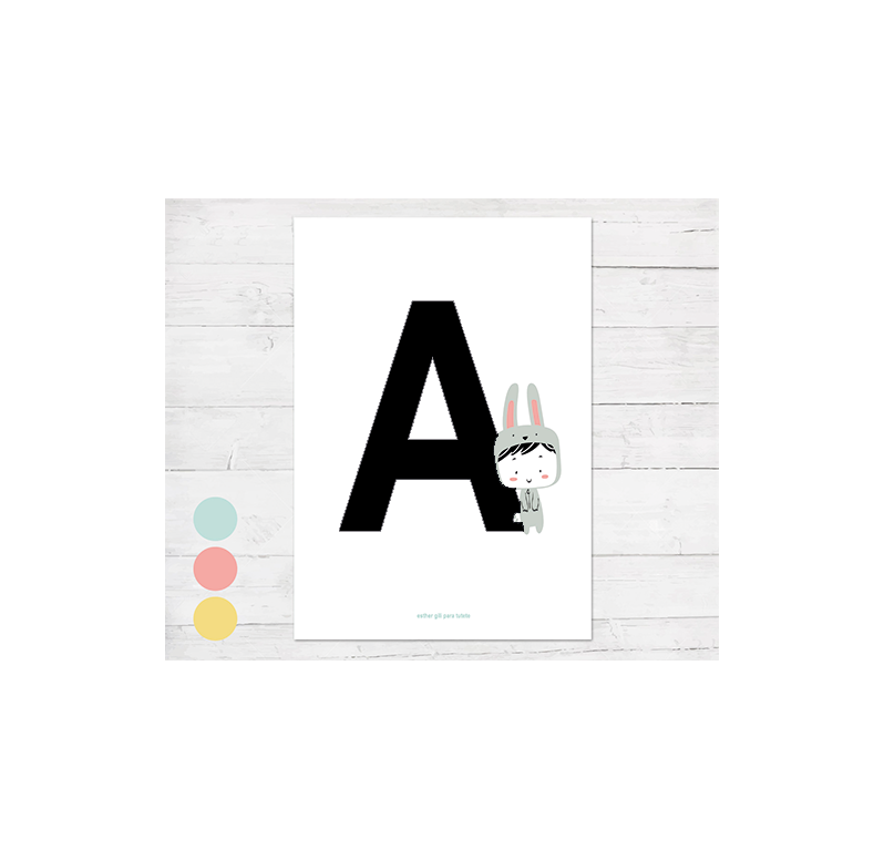 POSTER CON INIZIALE CON CONIGLIO - ESTHER GILI - TUTETE - A3 (29,7 x 42 cm) - PERSONALIZZATO