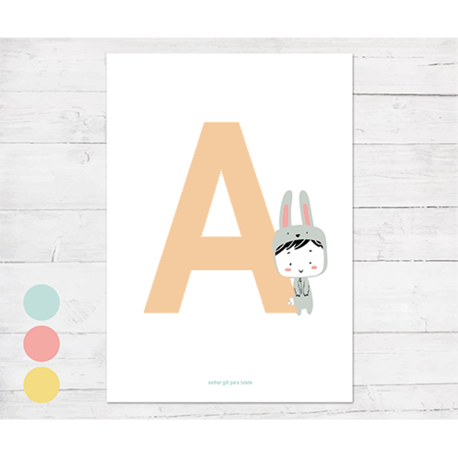 POSTER CON INIZIALE CON CONIGLIO - ESTHER GILI - TUTETE - A3 (29,7 x 42 cm) - PERSONALIZZATO