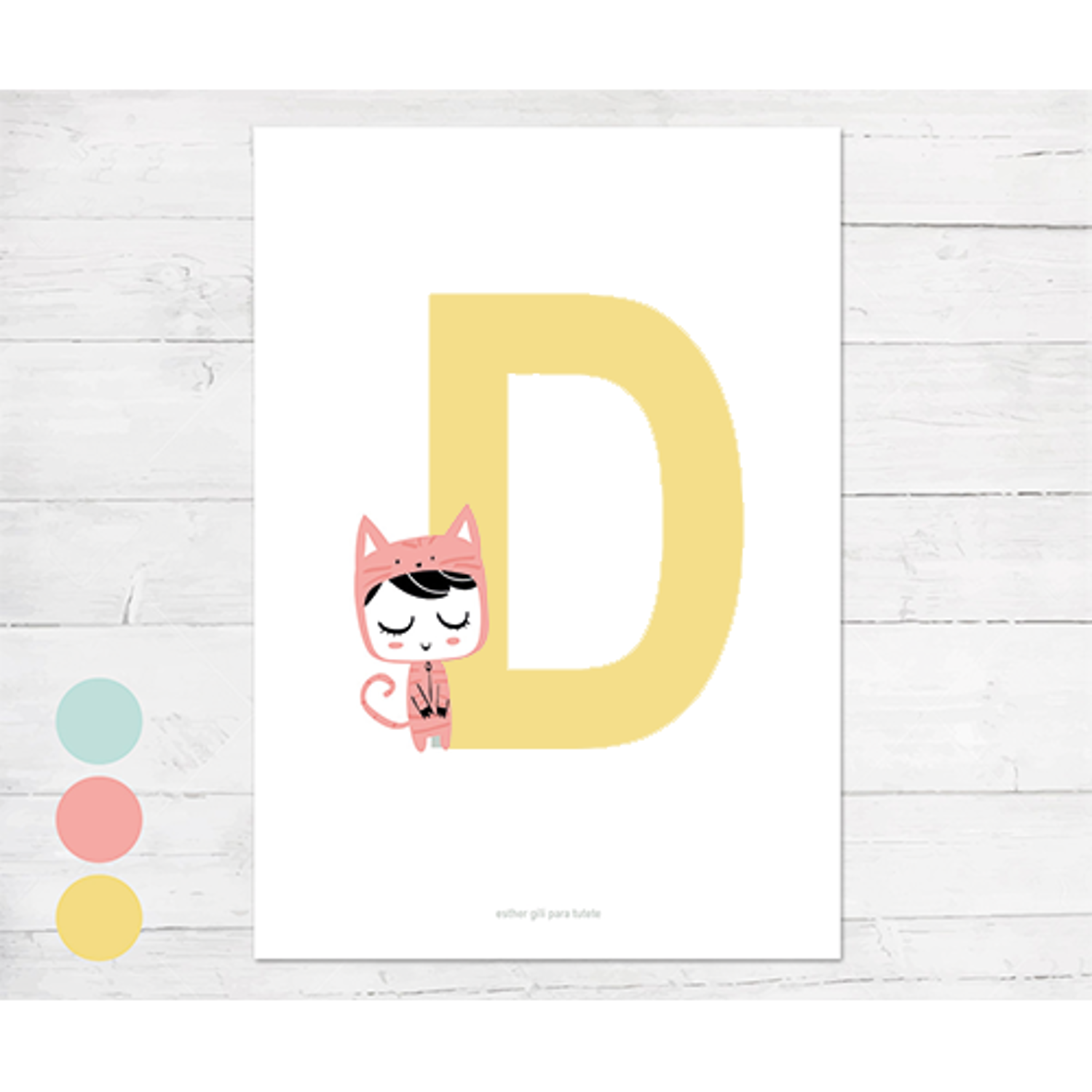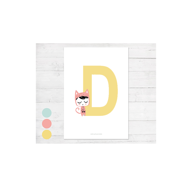 POSTER CON INIZIALE CON GATTO - ESTHER GILI - TUTETE - A3 (29,7 x 42 cm) - PERSONALIZZATO