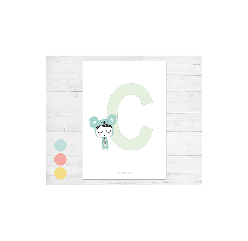 POSTER CON INIZIALE CON KOALA - ESTHER GILI - TUTETE - A4 (21 x 29,7 cm) - PERSONALIZZATO