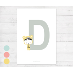 Questi poster si possono personalizzare con l'iniziale del nome del bebè e sono perfetti da incorniciare.