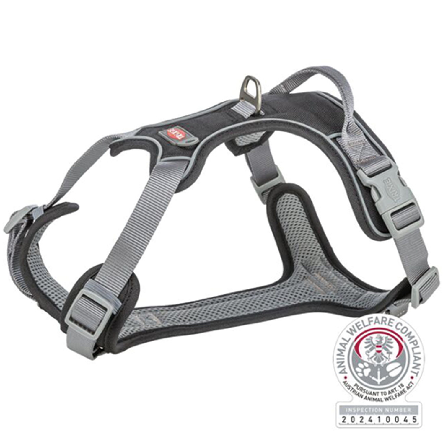 - anello per il guinzaglio nella zona del petto (può essere nascosto quando non viene utilizzato).