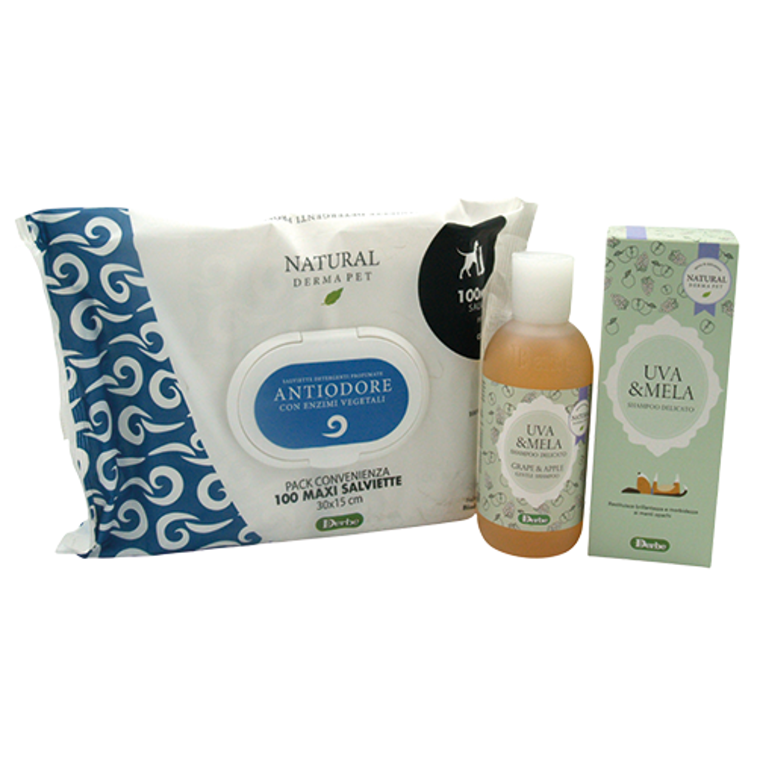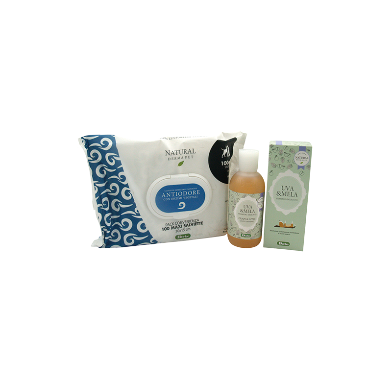 - UVA & MELA: lo shampoo Natural Derma Pet per cani agli estratti di Uva e Mela è un sistema detergente ottimale per restituire brillantezza e morbidezza ai mantelli opachi e danneggiati da prolungate esposizioni agli agenti atmosferici.