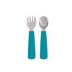 Set di 2 posate Feedie in silicone con le punte in acciaio inox, pratiche, con impugnatura ergonomica, perfette per le piccole mani.