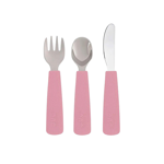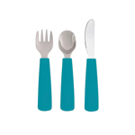 Set di 3 posate Feedie in silicone con le punte in acciaio inox, pratiche, con impugnatura ergonomica, perfette per le piccole mani.