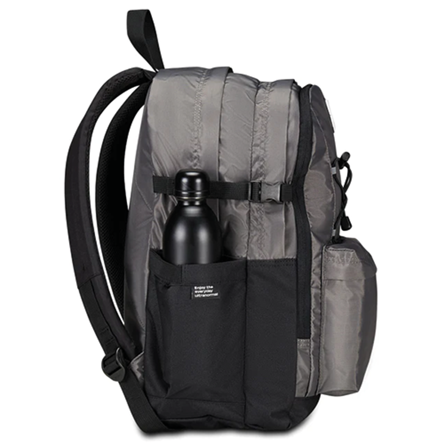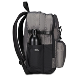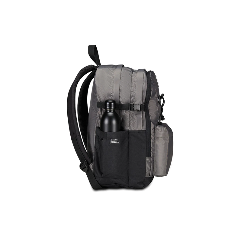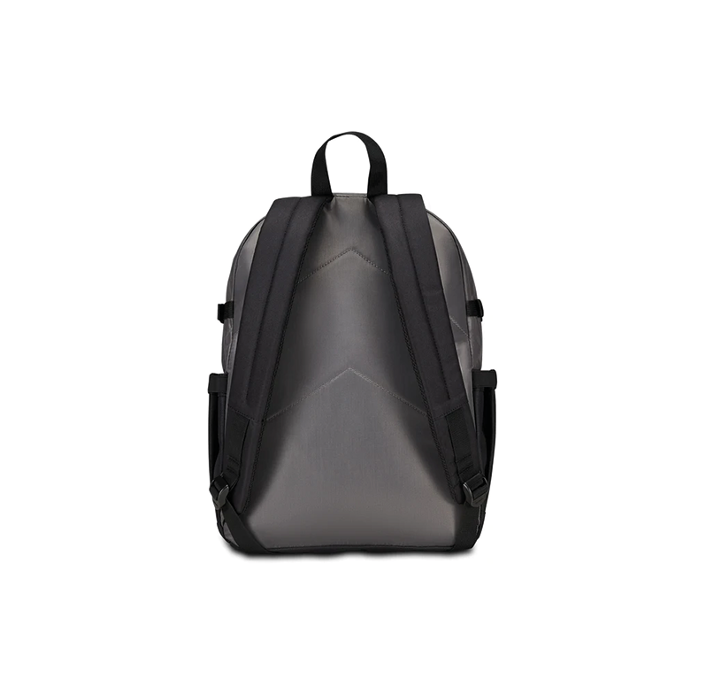 DIMENSIONI: 32 x 43 x 24 cm CAPACITÀ: 36 l SCHIENALE: Imbottito e rivestito in tessuto SPALLACCI: Imbottiti e rivestiti in tessuto con sotto spallacci in rete TASCHE: Tasca interna con organizer, scomparto interno porta PC e tasche laterali porta borraccia ALTRE CARATTERISTICHE: Zaino doppio scomparto con fondo rinforzato, nastri laterali per la regolazione del volume, sistema elastico anteriore con inserti riflettenti, tessuto lucido TESSUTO: 100% Poliestere riciclato, certificato "GRS"