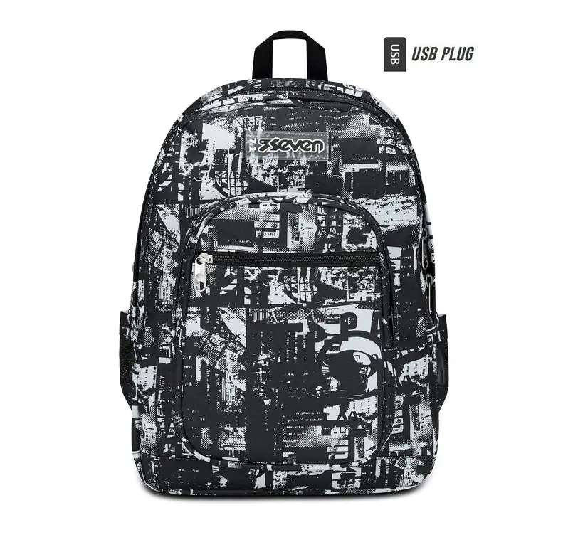 Controlla di aver messo quello che ti serve prima di uscire di casa, tanto sai che nel doppio scomparto del tuo nuovo zaino Seven Freethink c’è tutto lo spazio per mettere libri e quaderni, ma anche per un cambio da metterti per una partita al campetto nel tempo libero. Hai messo il PC o il tablet nello scomparto interno? E la borraccia nella tasca laterale? Bene! Finalmente puoi andare a prendere il bus per la scuola. Ma ti accorgi solo ora che la batteria del telefono è quasi scarica… E ora? Nessun problema, collegalo al supporto USB laterale dello zaino per ricaricarlo. C’è un bel pezzo fino alla fermata, ma grazie a schienale e spallacci confortevoli, lo zaino Freethink è molto comodo da indossare sulle spalle.