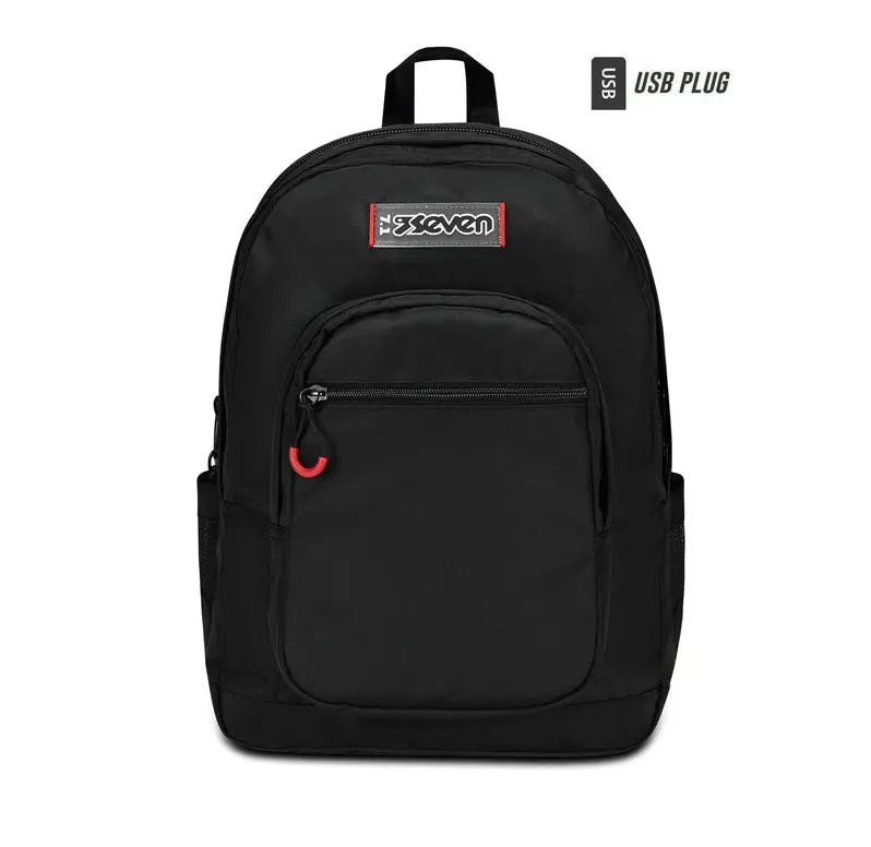 Controlla di aver messo quello che ti serve prima di uscire di casa, tanto sai che nel doppio scomparto del tuo nuovo zaino Seven Freethink c’è tutto lo spazio per mettere libri e quaderni, ma anche per un cambio da metterti per una partita al campetto nel tempo libero. Hai messo il PC o il tablet nello scomparto interno? E la borraccia nella tasca laterale? Bene! Finalmente puoi andare a prendere il bus per la scuola. Ma ti accorgi solo ora che la batteria del telefono è quasi scarica… E ora? Nessun problema, collegalo al supporto USB laterale dello zaino per ricaricarlo. C’è un bel pezzo fino alla fermata, ma grazie a schienale e spallacci confortevoli, lo zaino Freethink è molto comodo da indossare sulle spalle.