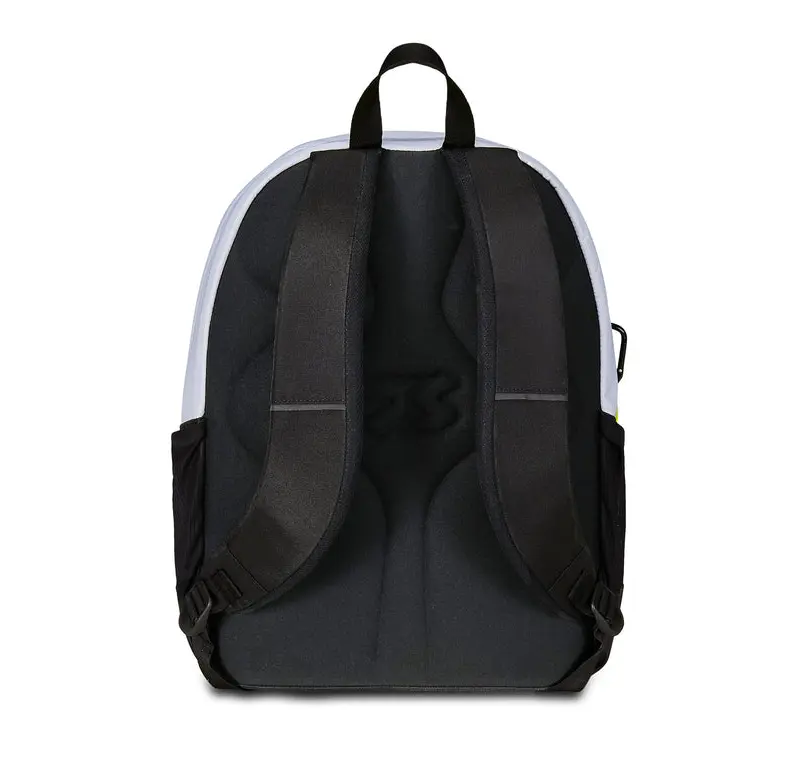 • SCHIENALE: Preformato e fodera a contrasto colore fluo.