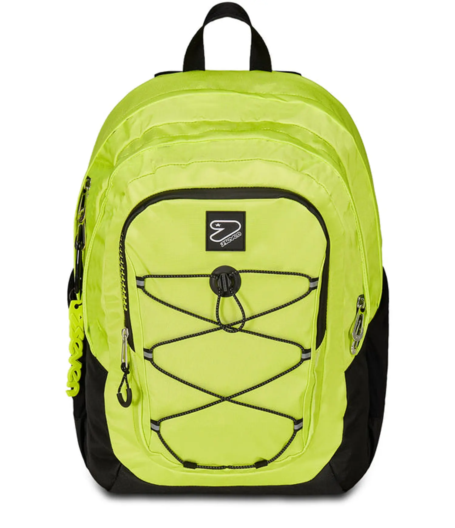 • SCHIENALE: Preformato e fodera a contrasto colore fluo.